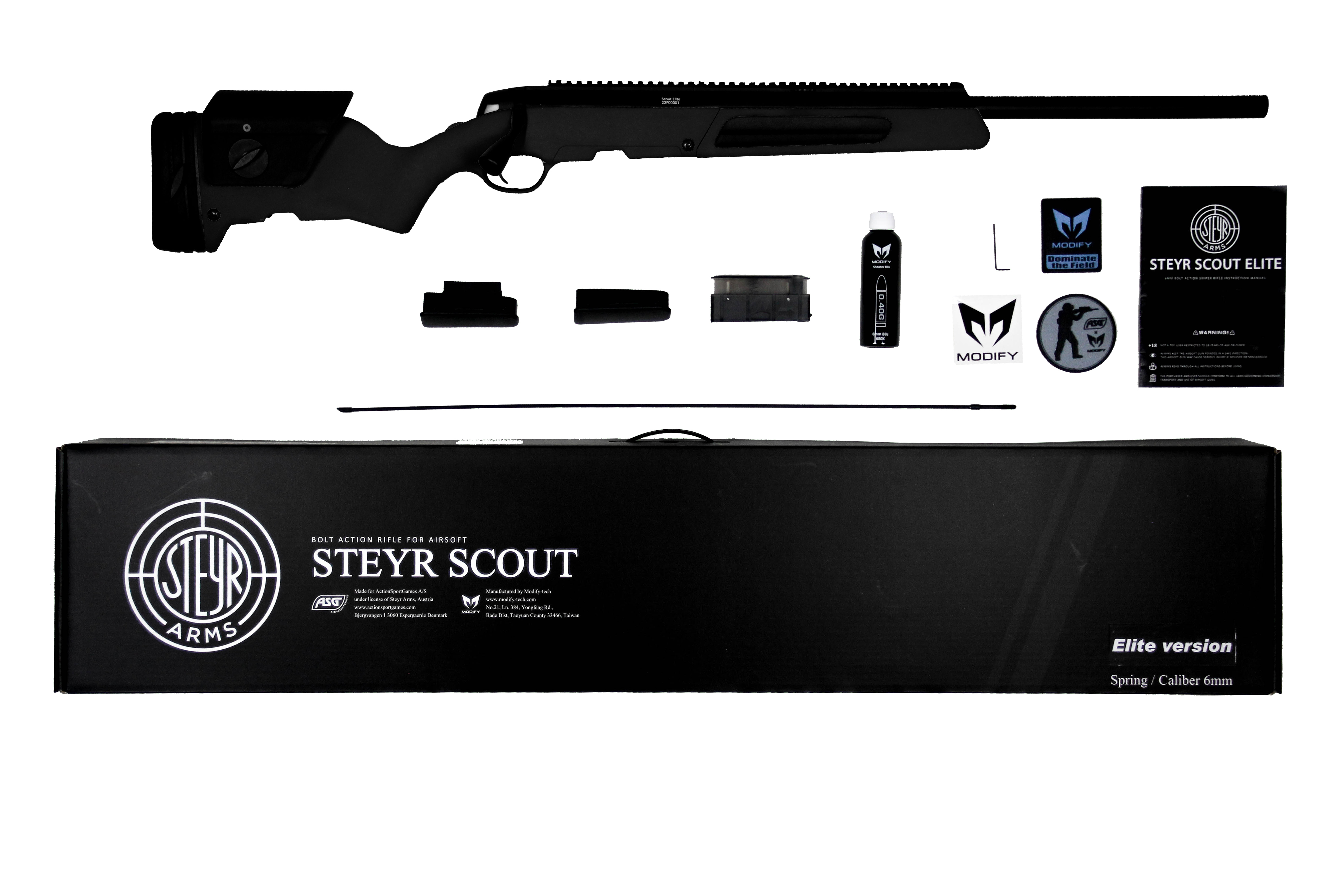 Steyr Scout Elite is a tactical sniper rifle authorized by the real gun maker Steyr Arms and licensed by ASG, we're bringing a replica sniper rifle and pre-upgraded gun to the players.
